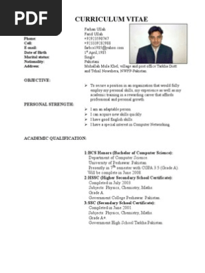 Cv for teaching as well job with no experience in pakistan plus sen.