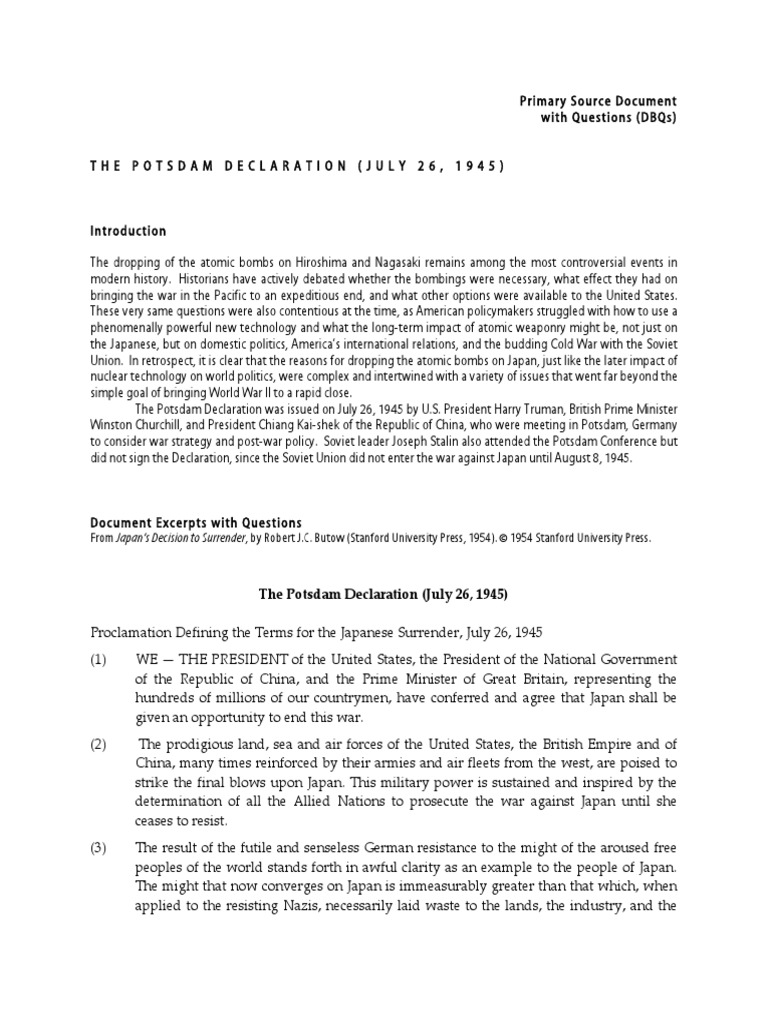 15.08.2020 · potsdam declaration, ultimatum issued by the united states, the united kingdom, and china on july 26, 1945, calling for. The major issue at potsdam was the question of how to handle germany. It met from july 17 through august 2, 1945, in potsdam. The potsdam declaration, or the proclamation defining terms for japanese surrender, was a statement that called for the surrender of all japanese armed forces during world war ii. The potsdam declaration , or the proclamation defining terms for japanese surrender , was a statement that called for the surrender of all japanese armed forces during world war ii.